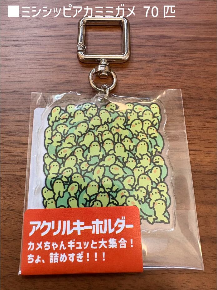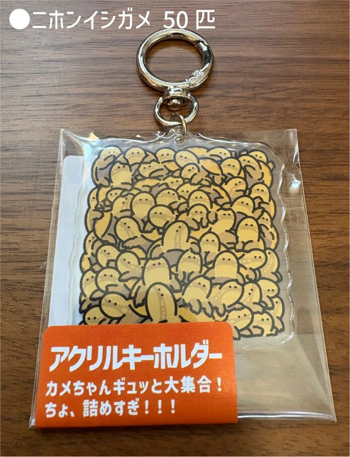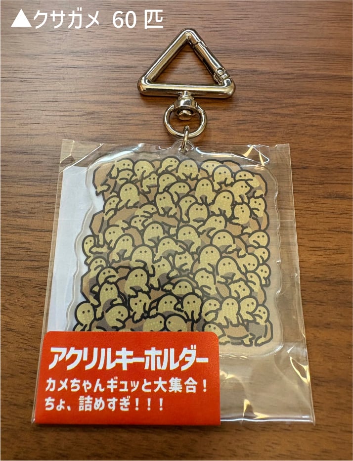 透明感のあるアクリルに、ぎゅっと集まったカメたちをデザインしました。