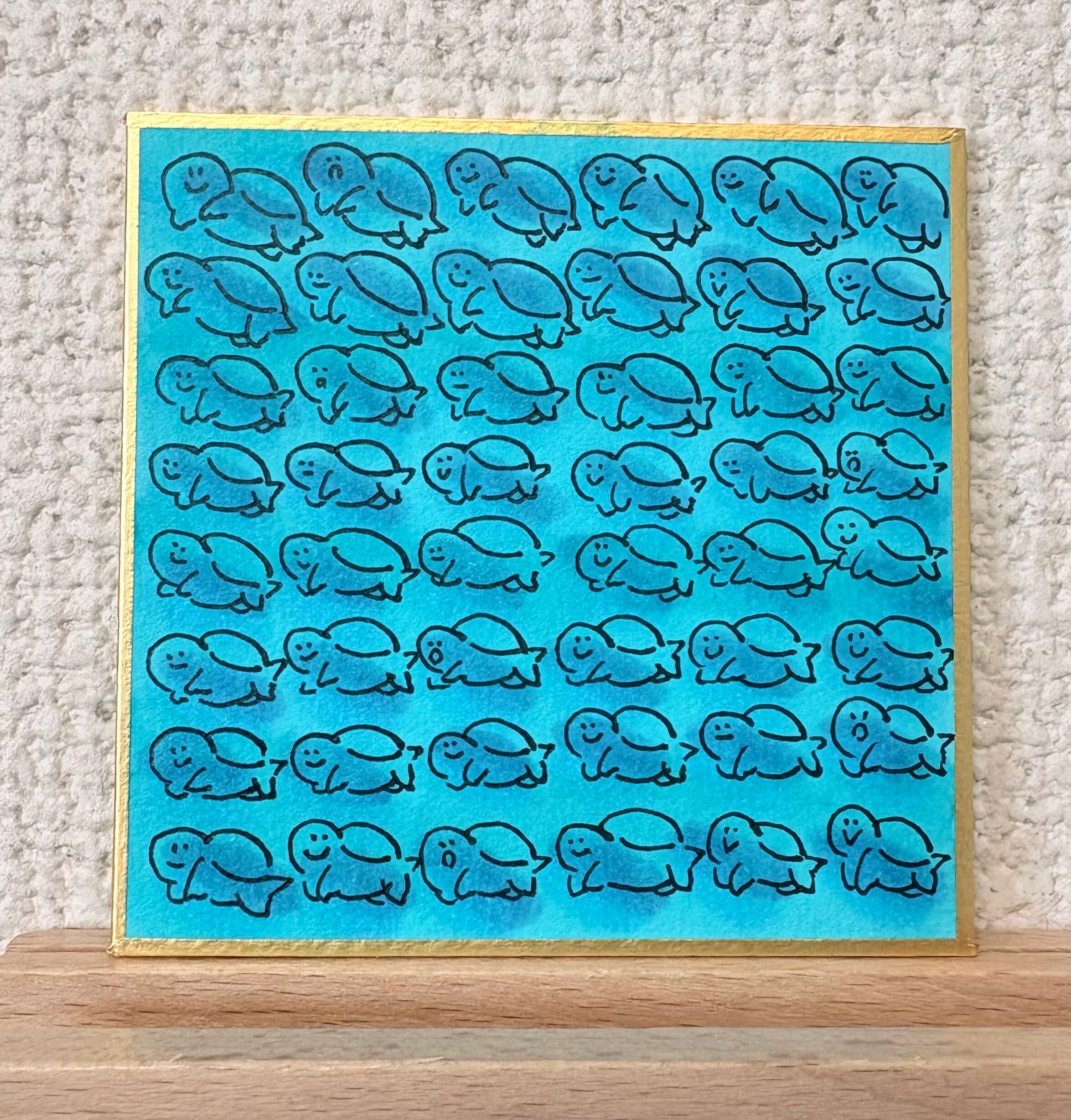 カメちゃんの豆色紙原画です。