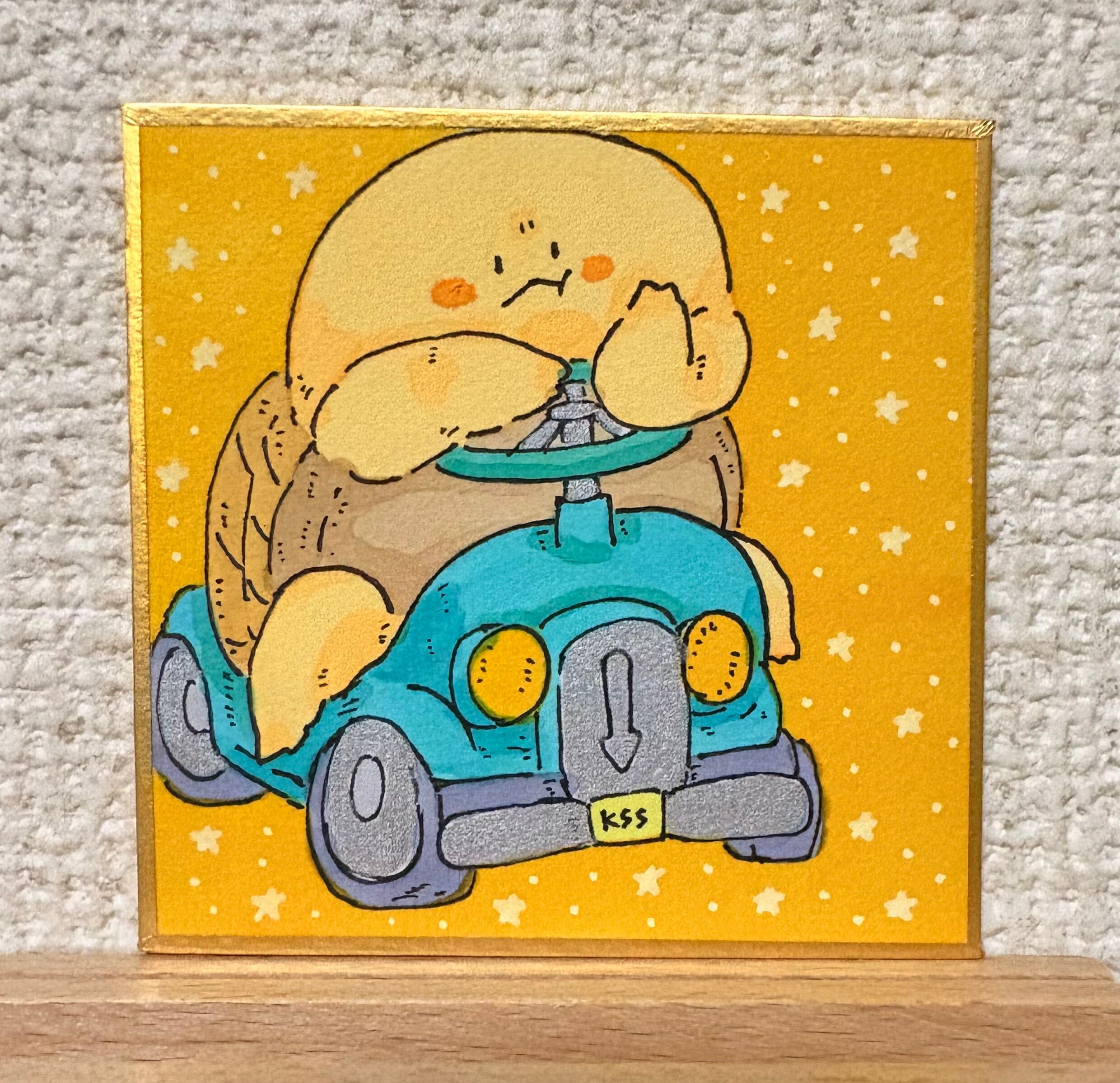 原画「この車ぜんぜん進まないの!ぷっくりカメちゃん」