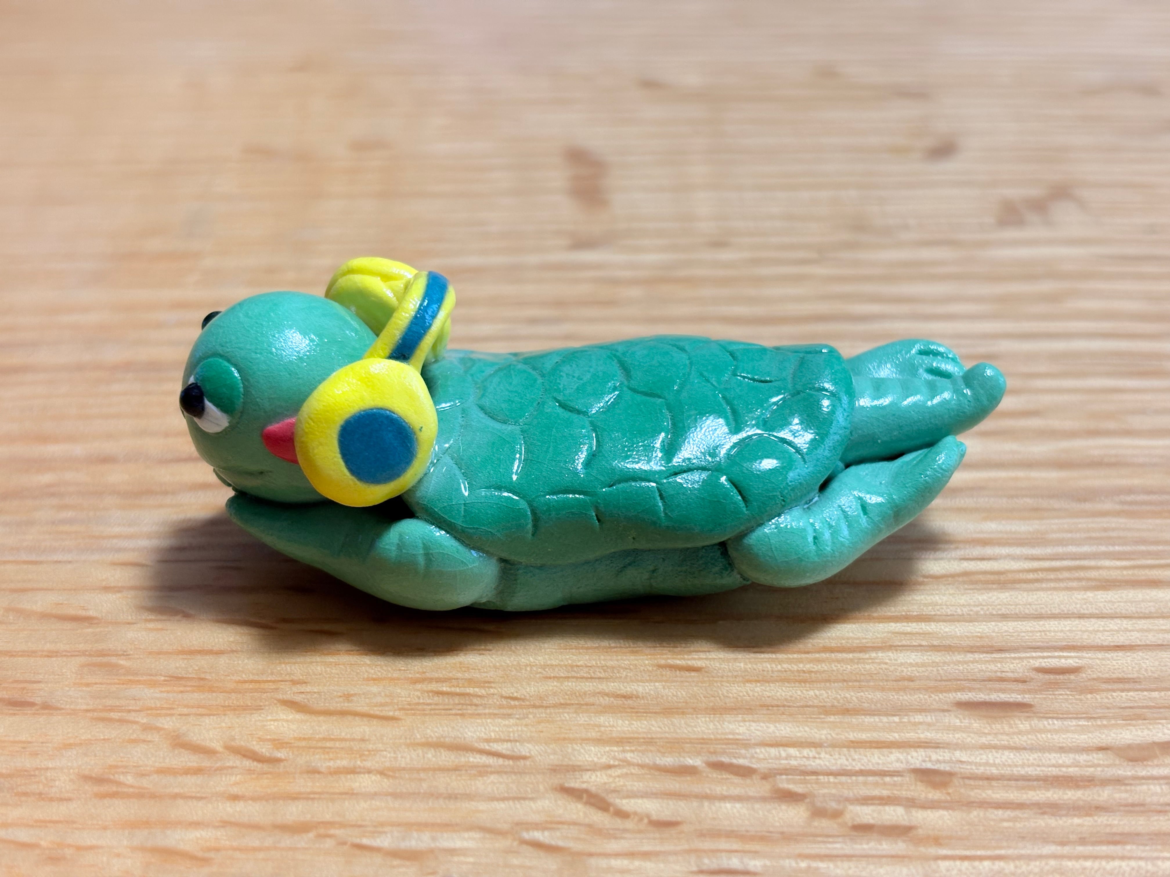 粘土細工 ヘッドフォンウトウトカメちゃん